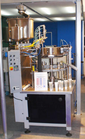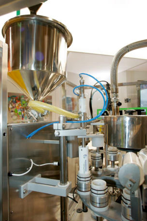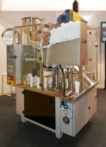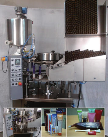LLENADORAS CERRADORAS DE COLAPSIBLES•Para productos líquidos o de alta viscosidad.•Aptas para tubos plásticos, trilaminados ó metálicos.•Sistema de llenado volumétrico por cilindro y pistón•Precisión en la dosificación de +/- 0,5%.•Boquillas de llenado con dispositivo anti-goteo •Sensor óptico que evita el envasado en caso de no estar eltubo en posición.•Todas las piezas en contacto con el producto en AISI 316, de fácil desarme y limpieza.•Todo el sector de envasado forrado en AISI 304.•El sellado de los tubos puede ser por medio de resistenciainfrarroja, ultrasonido o aire caliente.•Codificado en uno ó ambos lados del sellado.•Orientador automático de tubos•Corte de sobrante en la costura de tubos plásticos y trilaminados.•Agitadores y calefacción de producto en tolva.•Control de nivel de producto•Cubiertas de seguridad•Circuito de seguridad en las protecciones y puertas de acceso•Control de procesos general para operación con un solo operador•Dispositivo para envasado de potes y frascos.•Posibilidad de dosificación hasta 500cc.